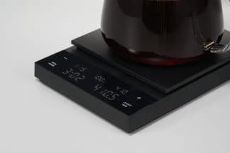 Smart ekstraksjonsberegning: Sett ønsket ekstraksjonsforhold (f.eks. 1:15 til 1:30), og la vekten automatisk beregne nødvendig vannmengde. Brygging blir enklere og mer fleksibel.